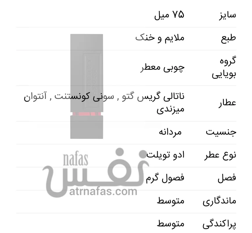 رایحه پایه : مشک ، سدر ، عنبر