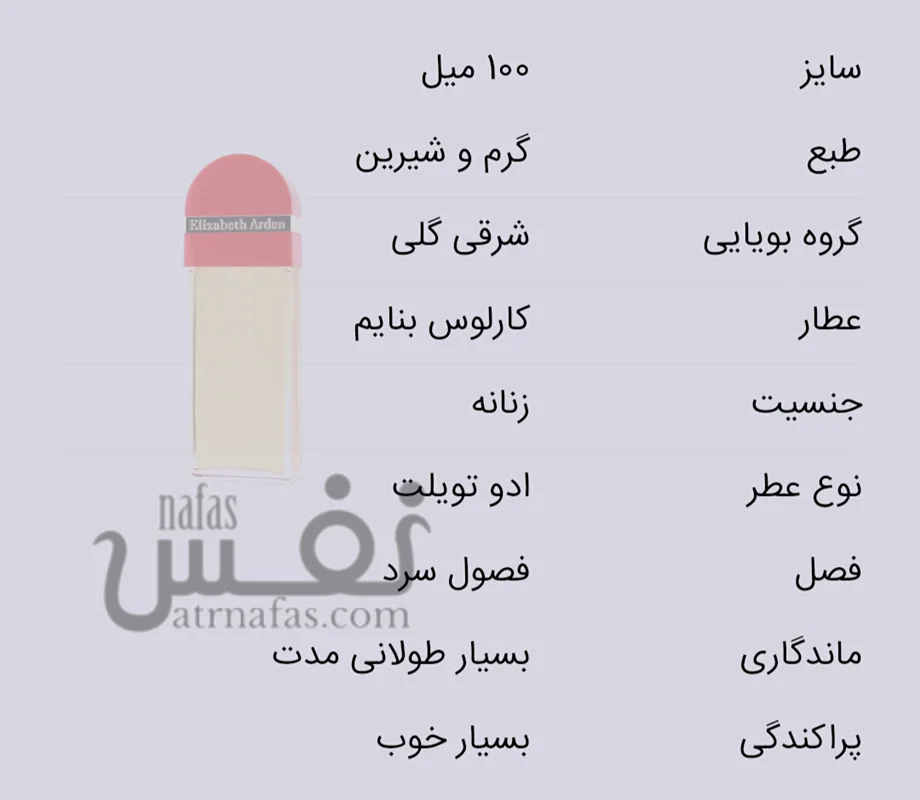 عطر ادکلن الیزابت آردن رد دور-Elizabeth Arden Red Door،عطری است کلاسیک و بسیار شیک که با رایحه گرم و شیرین عسل ترکیب با حسی نیمه شاداب و صابونی مانند از گل ها آغاز می شود که بسیار دوست داشتنی است.
