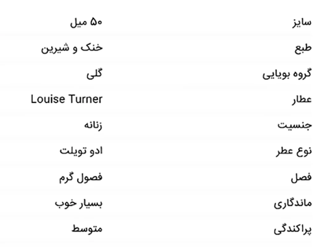 رایحه میانی : گل یاسمن ، گل رز ، گل مریم